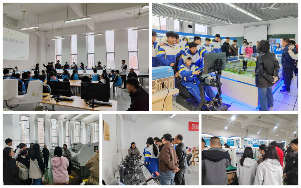 学生们依次参观了数控车训练室、3D打印与激光加工技术训练室、智能网联控制训练室、智能制造训练室和热转印训练室。从熔融塑料堆出创意模型,到激光光束切出微米精度,学生们详细了解了现代增材与减材加工技术,创新的设计思维在这里落地开花;通过亲自操作融合人工智能与物联网技术的智能小车,近距离感受前沿科技的魅力;通过动手参与文化衫制作,从图案设计到转印操作,沉浸式感受技术与创意的融合魅力。